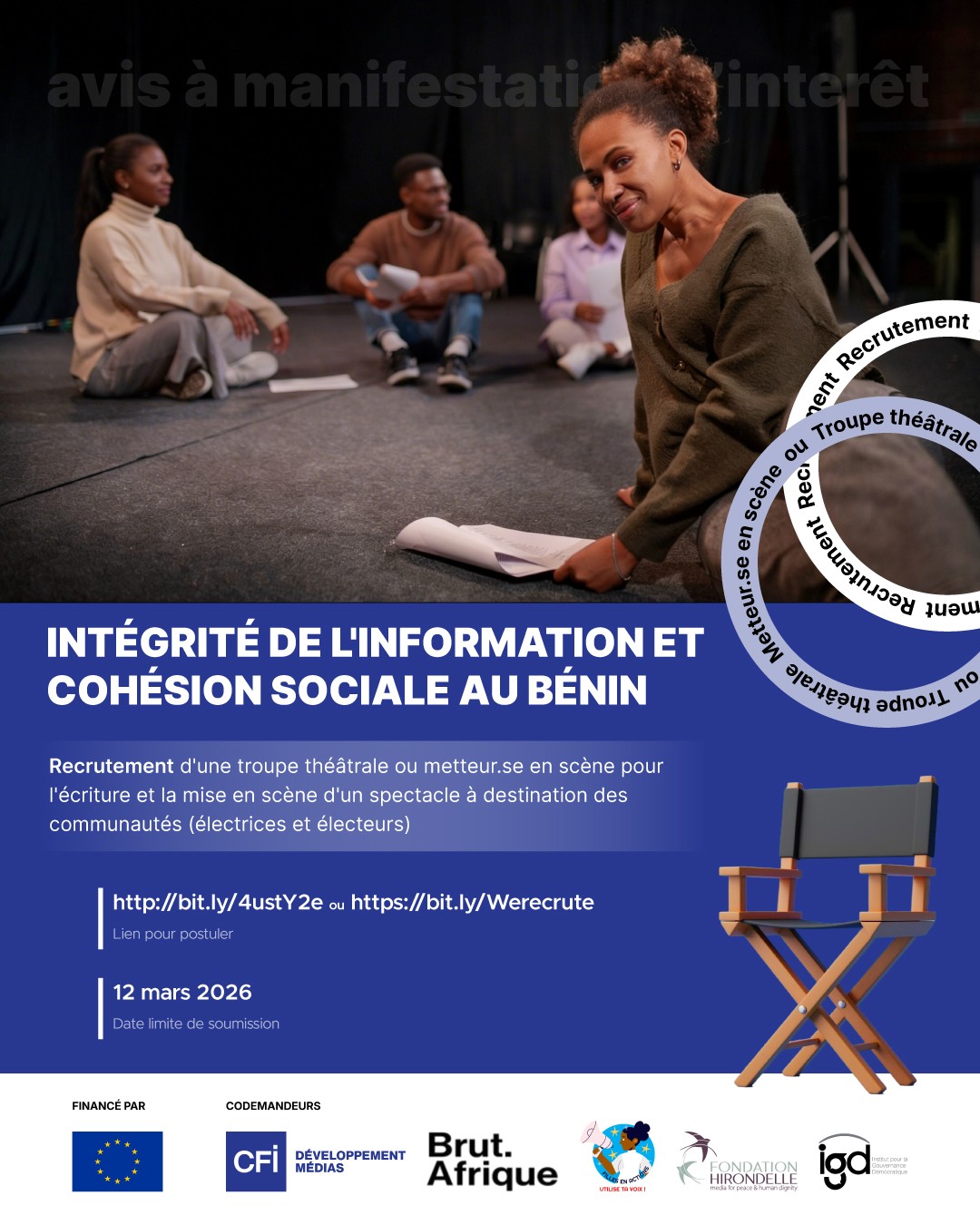 Avis à Manifestation d’Intérêt (AMI) relatif au Recrutement d'une troupe théâtrale ou metteur.se en scène pour l'écriture et la mise en scène d'un spectacle à destination des communautés (électrices et électeurs)